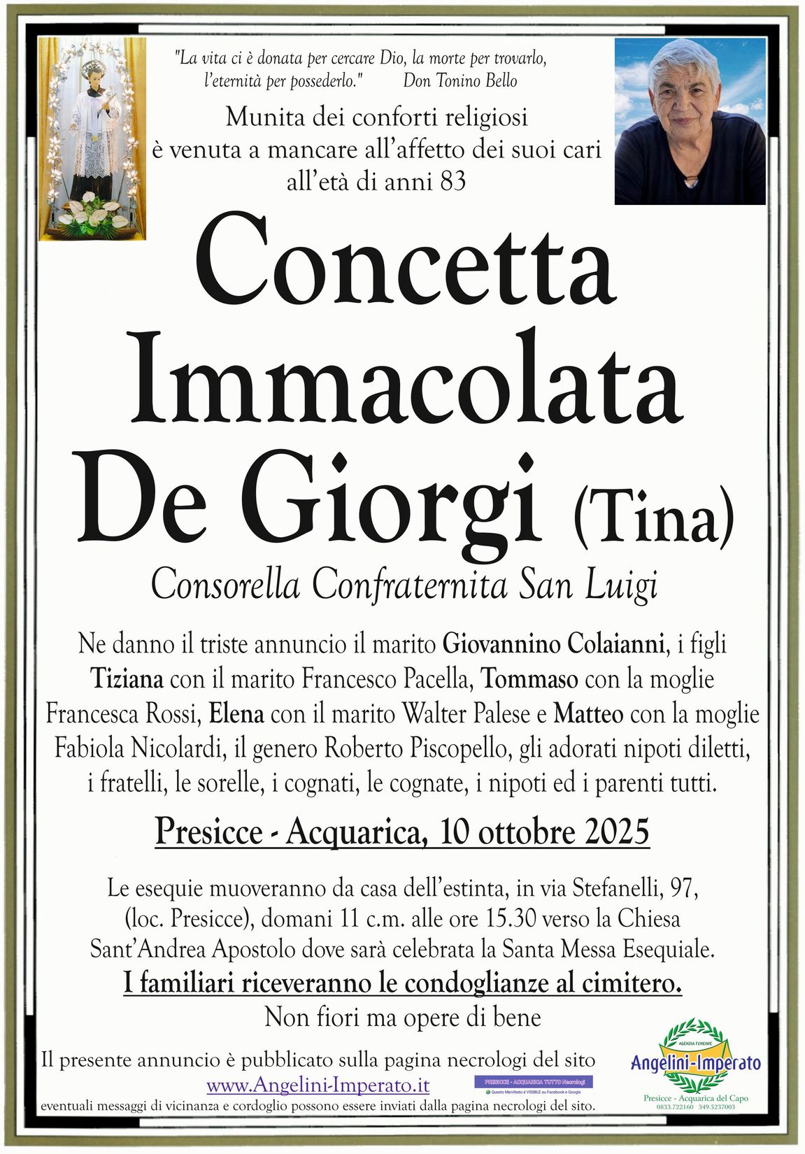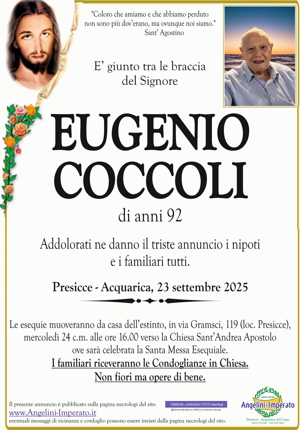 I funerali avranno luogo giovedì 14 c.m. alle ore 9.30 verso la Chiesa