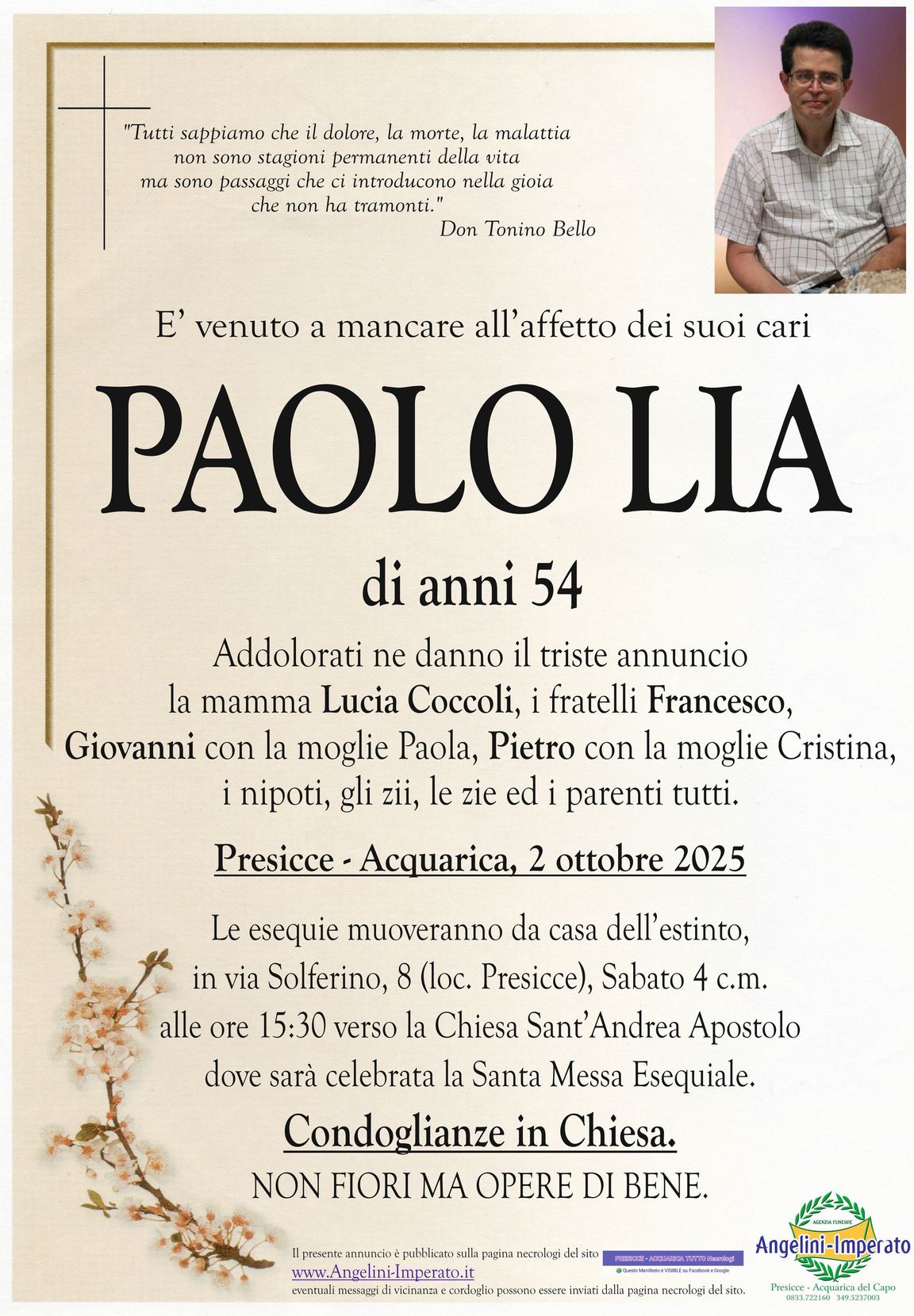 Le esequie muoveranno da casa dell’ estinto, in via Salvemini, 15,